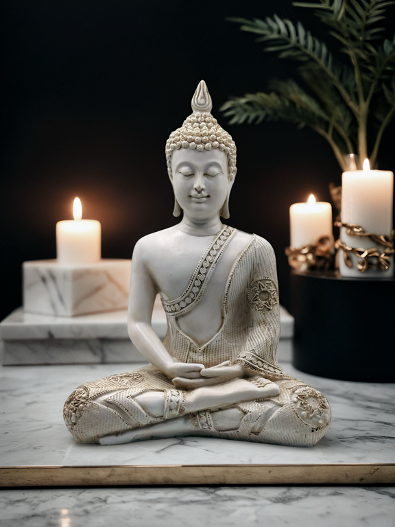 Handmade White Thai Buddha in Meditation – Polyresin Statue