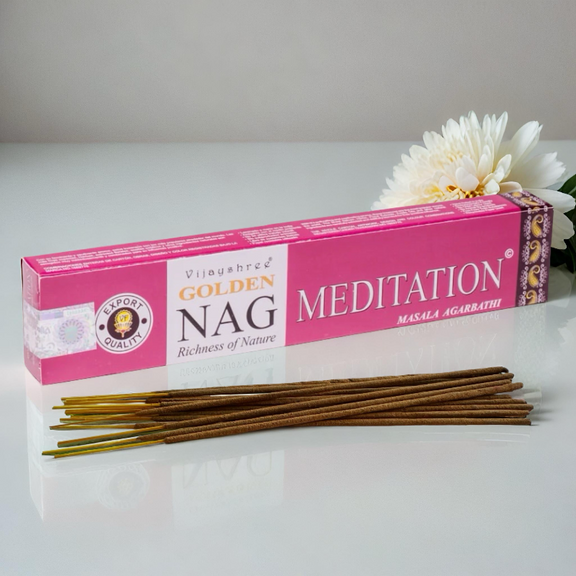 Golden Nag – Meditation Incense is a sacred aromatic blend designed to deepen stillness, quiet the mind, and elevate your spiritual practice. Crafted with ancient wisdom and intention, this incense supports a tranquil atmosphere for inner reflection, mindfulness, and connection with the higher self.