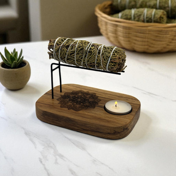 Light the tip, let it smolder, and gently wave the smoke around yourself, your space, or sacred objects. Always use a fireproof dish and never leave burning smudge unattended.